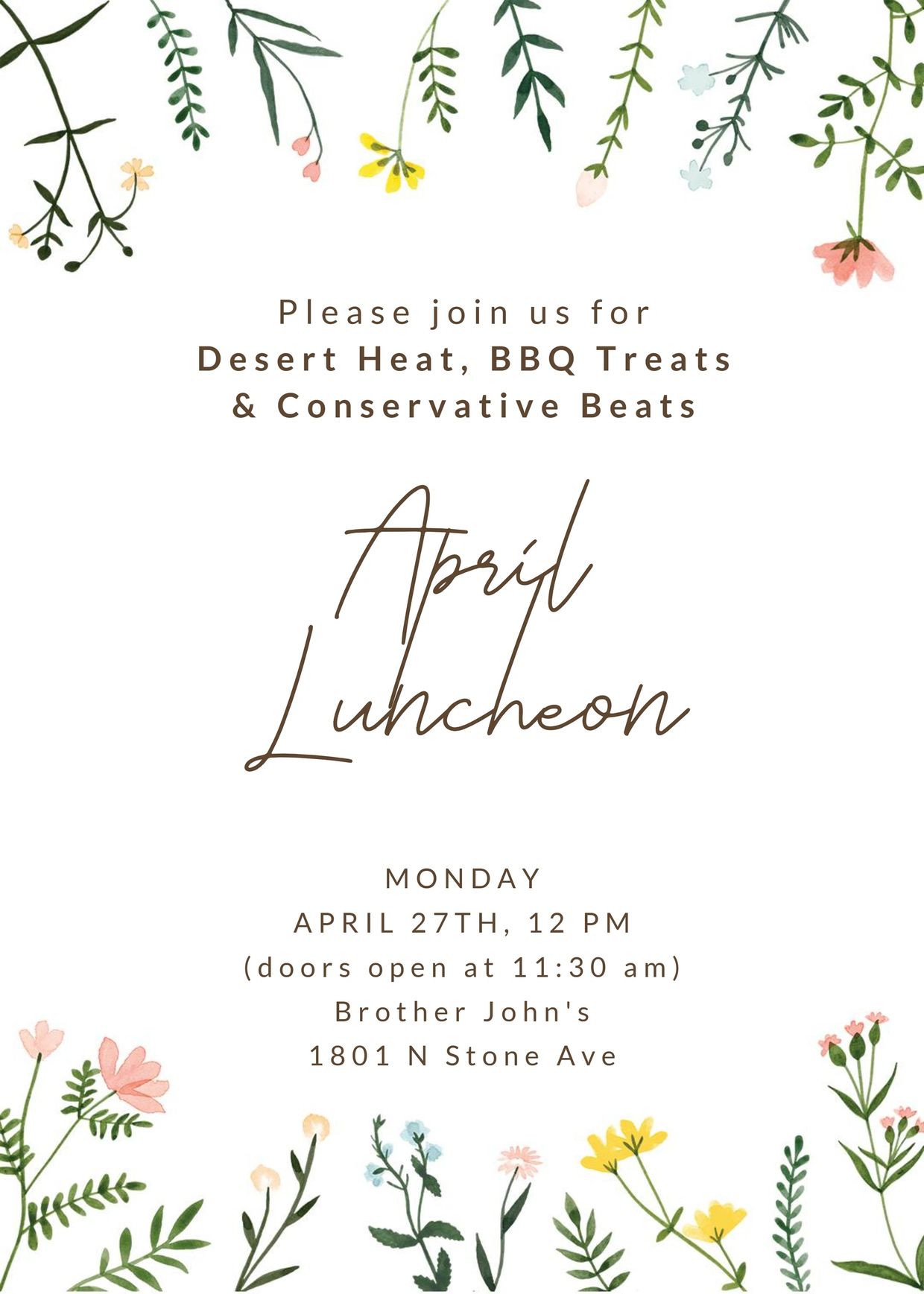 A reservation made is a reservation paid. Anyone who cancels after 12 pm on the Thursday before the luncheon (i.e., April 23rd) will be charged for the luncheon. We have to turn in numbers, and once we do that, we are charged for the meal whether you show up or not.